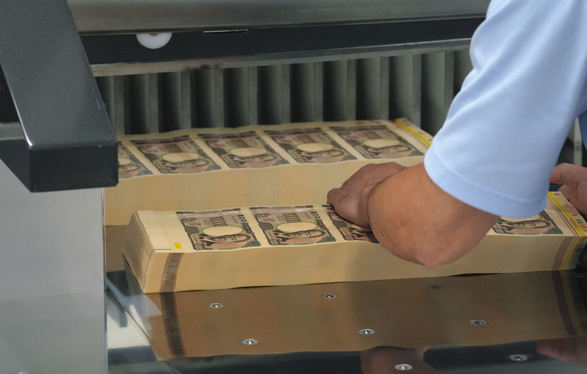 ちなみに、紙幣となる紙をつくる工場は小田原と岡山にある。日銀が国立印刷局に紙幣の製造を委託し、印刷局が日銀に納入する流れ。日銀が24年度に発注したのは29億5000万枚。うち、1万円札は約18億枚、5000円札は約2億枚、1000円札は約9億枚を発注した。