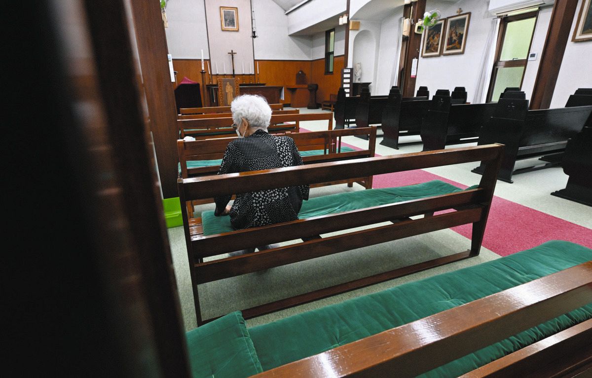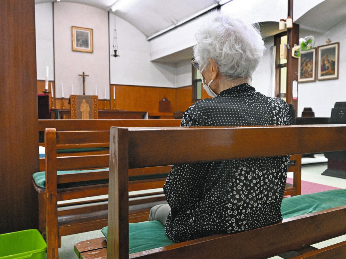 入所者で教会の信者の田辺幸子さん(91、仮名)が、木の長いすにゆっくりと腰を下ろす。いつもと同じ、後ろから2列目の左側。座面の緑色の生地が、わずかにあせている。しんと静まり返った礼拝堂を見渡した。「昔はここがいっぱいになったんだけどね。みんな、亡くなった」