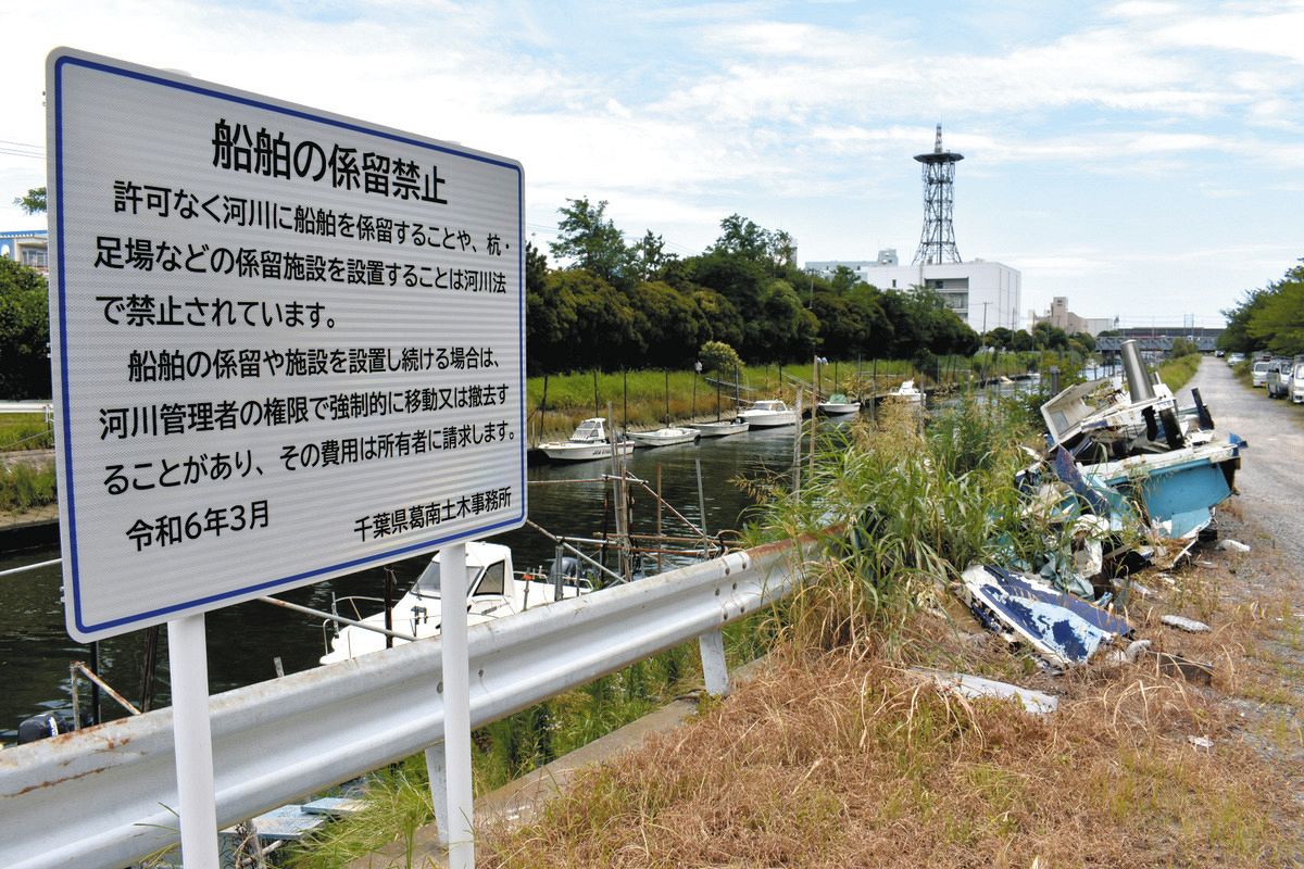 ただ、強制撤去にもハードルはある。葛南港湾事務所は17年、海につながる日の出水路(千葉県船橋市)に不法係留されたプレジャーボート4隻を県条例に基づいて強制移動させたが、その後持ち主が引き取りに来ず、20年に廃棄した。