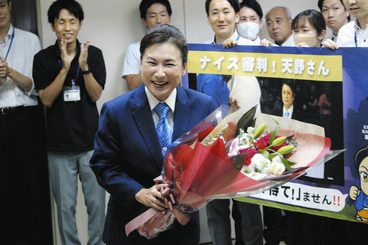 江戸川区職員から拍手で迎えられる、パリ五輪で柔道の審判員を務めた天野安喜子さん