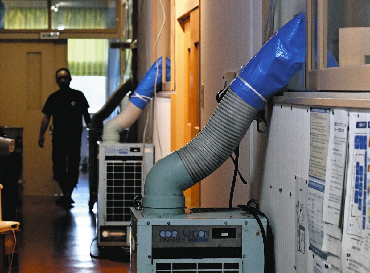 文部科学省の調査では、全国で避難所に指定される小中学校や高校など約3万校のうち、冷房機器があるのは22年12月時点で64.9%だった。ただこの調査では設置場所に教室や会議室も含め、「利用可能な冷房機器を保有している部屋等が一部屋以上あれば、避難所として保有しているものとしている」と見なした。