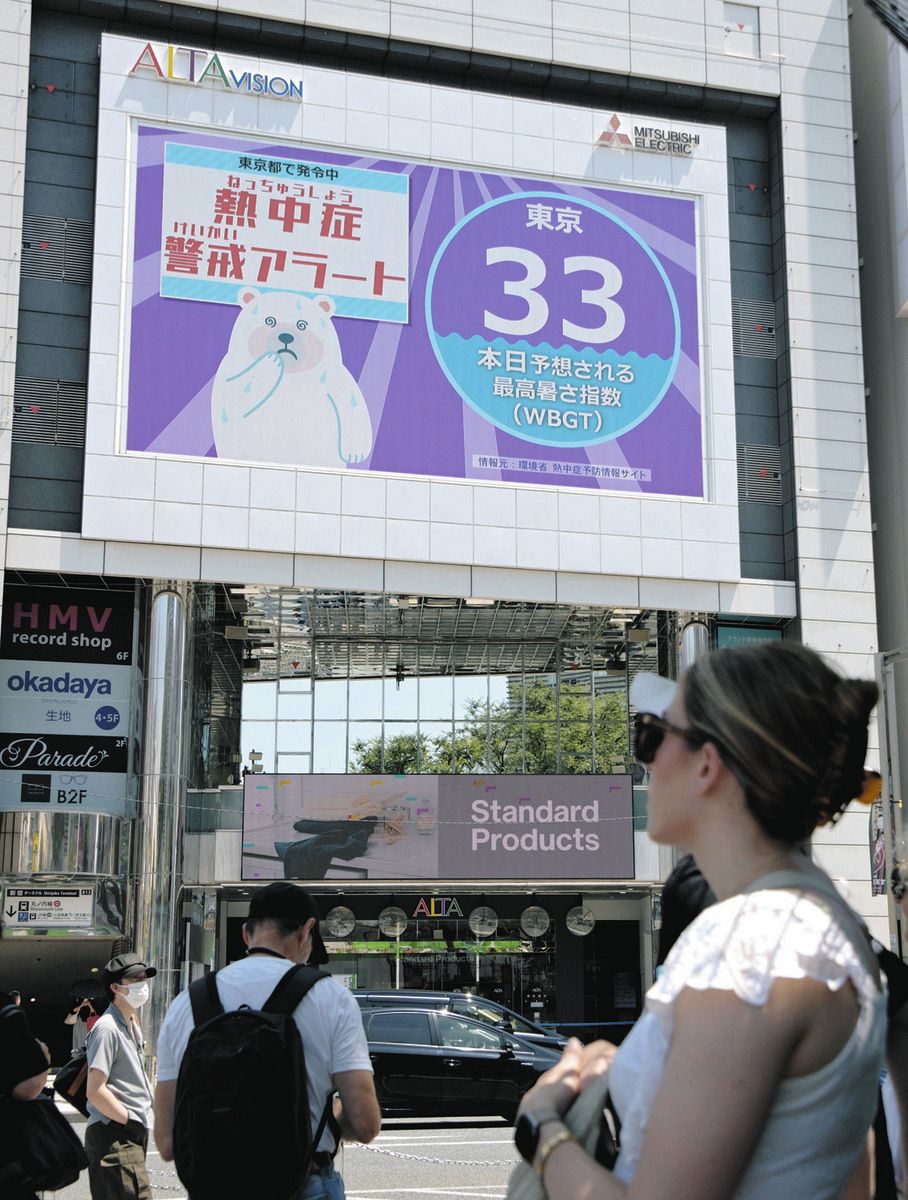 熱中症警戒アラートの発表を伝える大型ビジョン