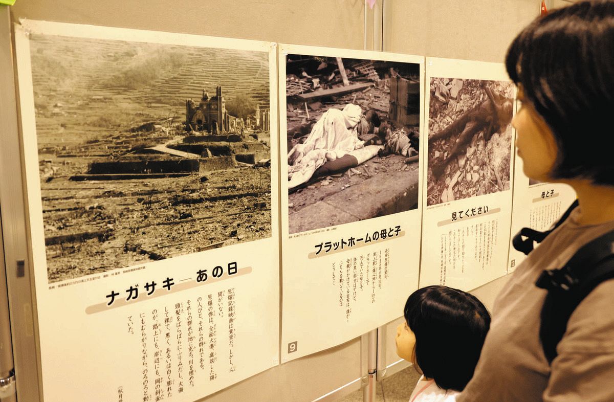 生後間もなく原爆投下後の広島市に入り、被爆した同会の原征夫(ゆきお)副会長(79)は「関心が薄れていくのではないかという危機感がある。日本が核兵器禁止条約に参加していないのは残念なことで、広く考えるきっかけになってほしい」と願っていた。展示は16日午後4時まで。(浜崎陽介)