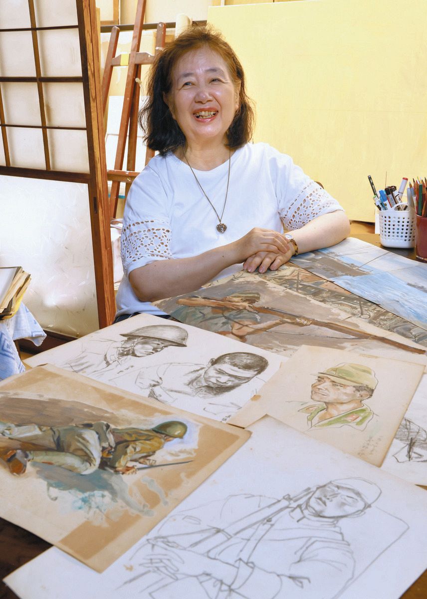 博典さんが戦地に赴いたのは20代。帰還後、児童書や百科事典などの挿絵を手がけた。義子さんは「年を取ってから描いた絵の方が上手。でも、戦地での絵には感情がこもっている。『この一瞬を残さなければ』という使命感で必死に描いたのが伝わる」。