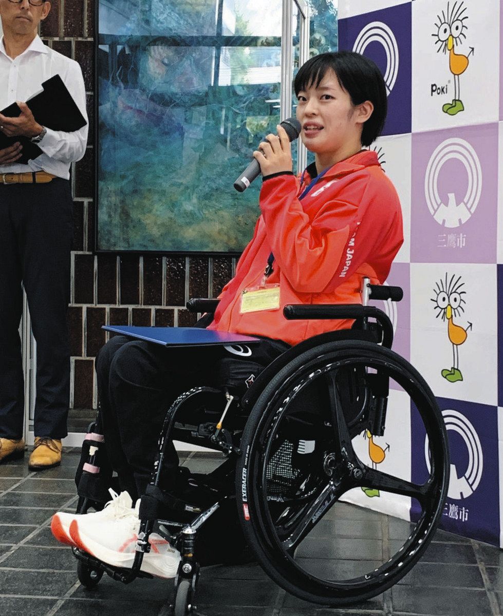 28日開幕のパリ・パラリンピックに、車いすバスケットボール女子日本代表として出場する東京都三鷹市職員石川優衣さん(27)の激励セレモニーが15日、同市役所であり、石川さんは「金メダルを取りたい」と抱負を語った。