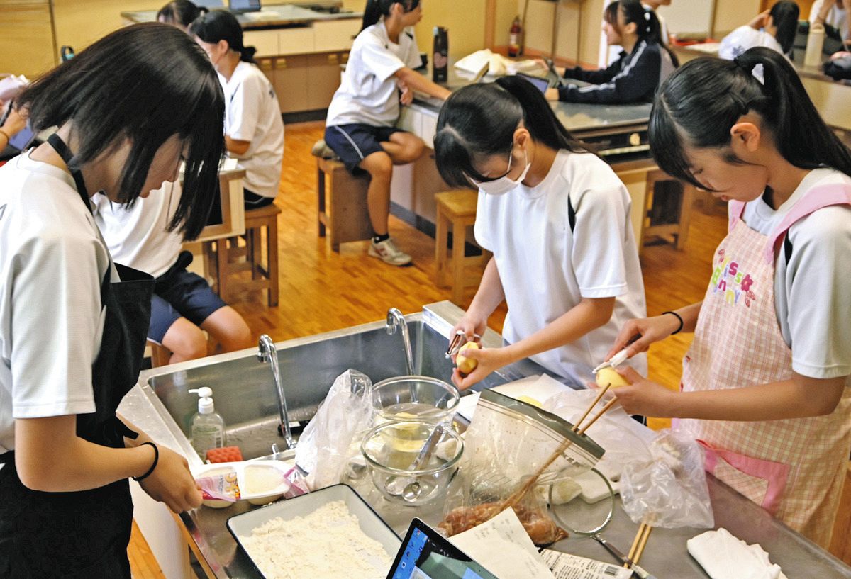 区立代々木中の調理室に食欲をそそる香りが漂う。生徒たちはジャガイモを揚げ、ご飯をおわん形に固めている。調理実習かと思いきや、ファッションの探究だという。「食べられる服を作っています。このご飯は帽子。ポテト?飾りです」と、悪戦苦闘しながら女子生徒が説明する。