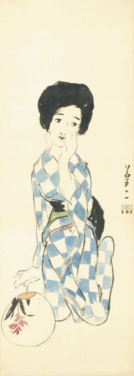 《夏姿》 1915年ごろ絹本着色111.8×40.2センチいずれも竹久夢二美術館提供