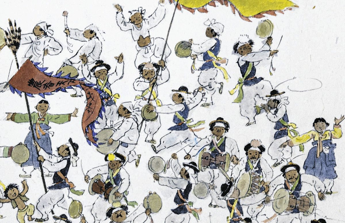 洪さんは愛知県岡崎市生まれ。出版社の編集者として働きながら、自身のルーツである朝鮮半島の文化を追体験しようと、独学で絵を描き続けた。庶民の素朴な暮らしを題材にした「民俗画」と呼ばれる作品は、どこか懐かしい空気を漂わせる。朝鮮時代の市場のにぎわいが聞こえてきそうな絵もある。