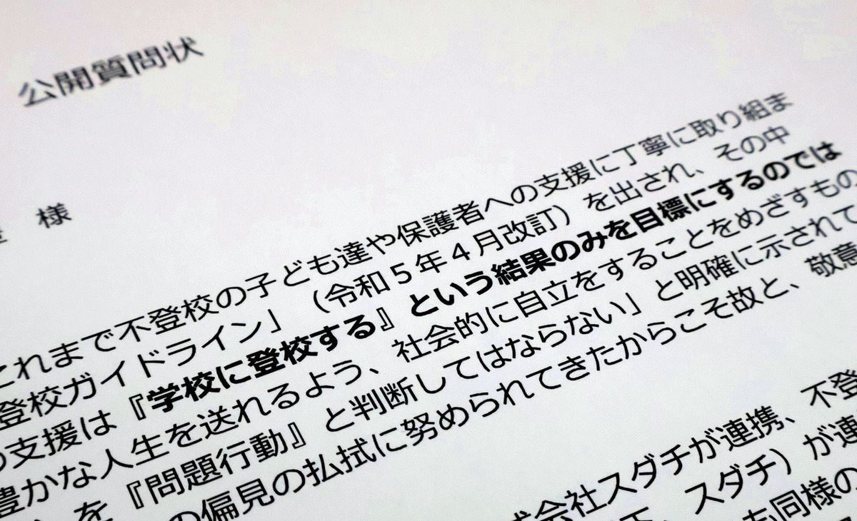 これに対し、不登校の子を持つ保護者の団体などが疑義を呈した。スダチの「平均3週間で再登校できる」と登校に重きを置く姿勢や高額な料金設定、子どもではなく親に働きかける手法などに異論が出ているからだ。「子どもの声を聞かずに登校させて大丈夫か」といった不安の声も少なくない。行政が後押しするとなればなおさらだ。