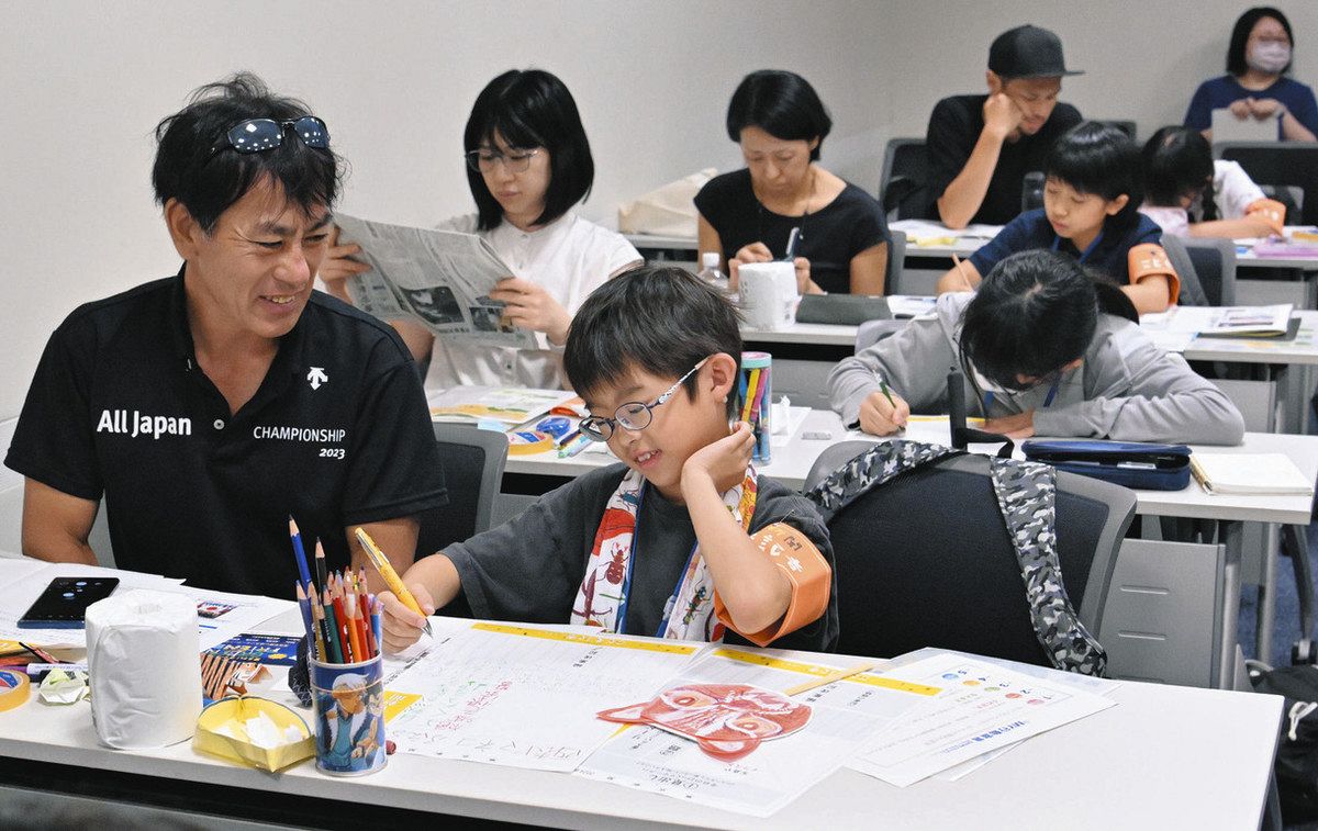 参加者は牛乳パックでうちわを作った後、絶滅危惧種のレッサーパンダなどの折り紙にも挑戦。講師の話で印象に残ったことをテーマに、「地球沸騰化」「やせたシロクマ発見!」など思い思いの見出しの新聞を作った。