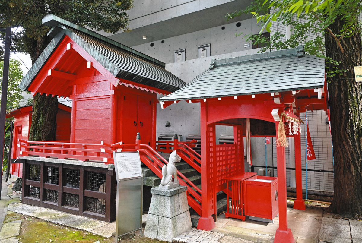 清水稲荷神社の社殿となっている奉安殿(左)=目黒区で