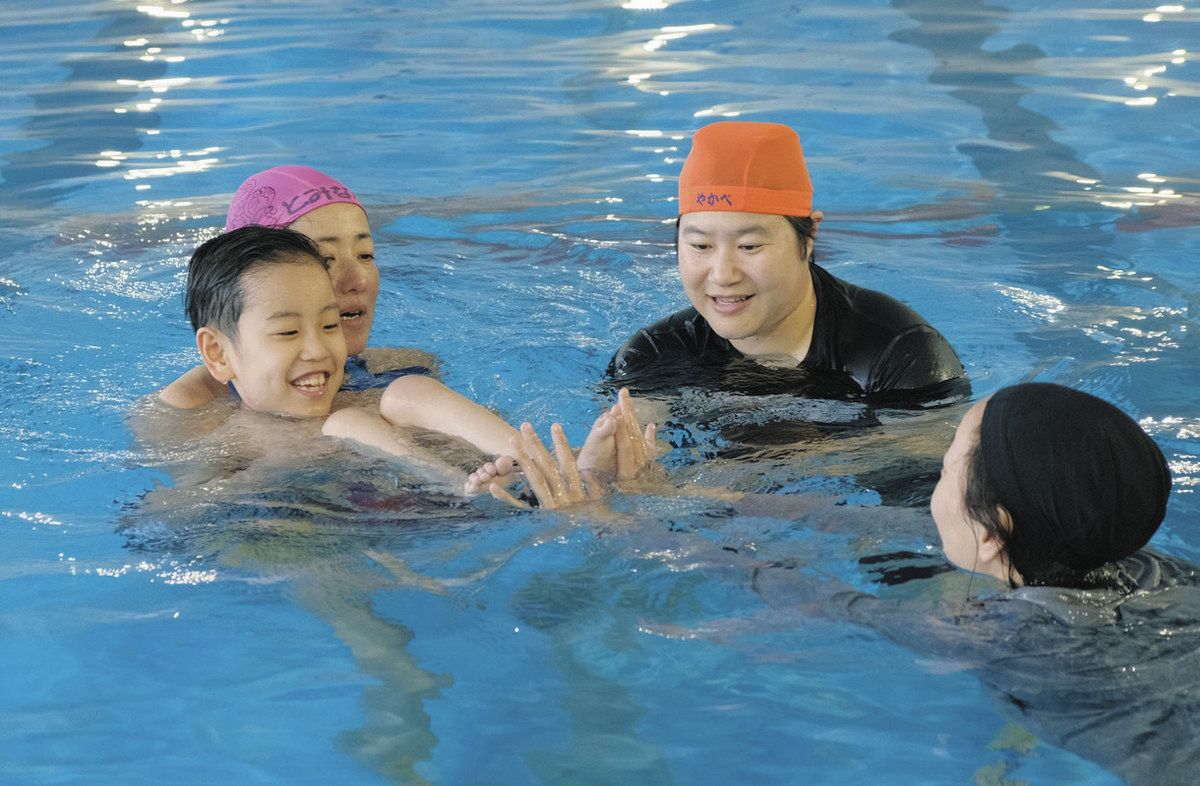 センターで重度障害者のプール教室を担当している水泳専門の職員らが水中での平田さんの支え方などを実演した。その様子を学んだ江戸川区総合体育館職員の冨永美千代さんは「重度障害のあるお子さんを教えるのは初めて。顔の見える対面よりも、背面から体を支えるほうが相手がリラックスしやすいことなどが勉強になった」。母の絢子さんは「子どもを連れて参加できる教室が身近にあると助かる」と話した。