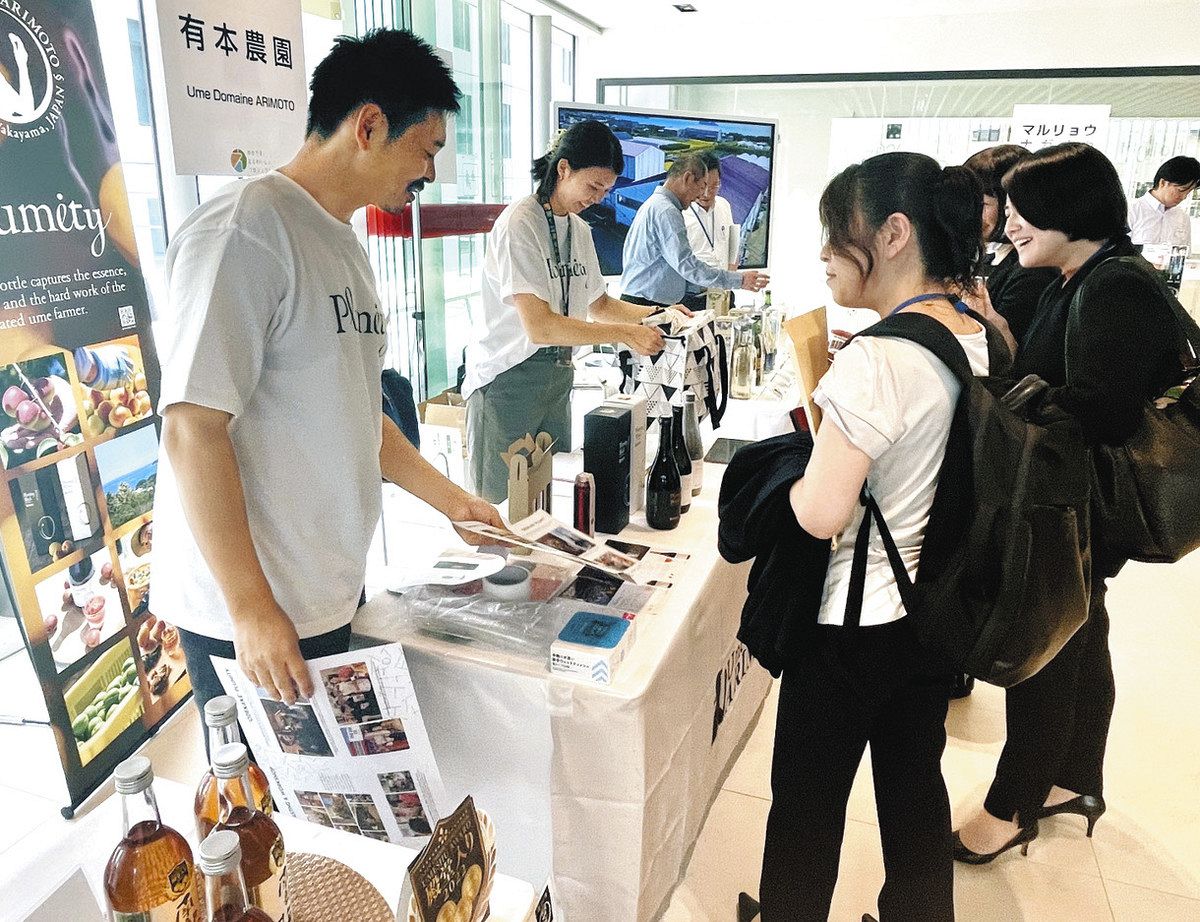 商談会では特区の認定を受けた自社のバラ園のバラを使った梅酒や、梅を完熟させた梅酒などが目を引いた。事務局の黒川綾香さんは「地元の梅で造った梅酒で、各事業者ごとにこだわりがあり、まったく違う味わいがある。関東の皆さんにも魅力を知ってもらい、地域の活性化につなげたい」と話した。(竹谷直子)