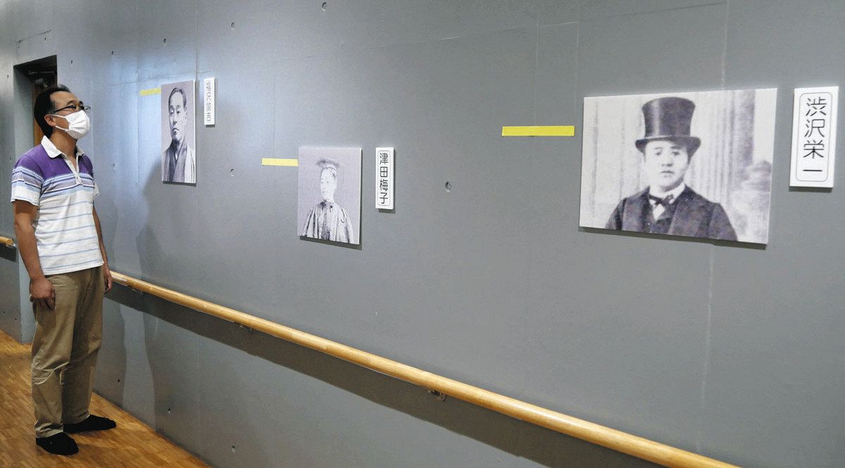 昔の人と背比べができる体験コーナーもある。7月の新紙幣発行で話題の渋沢栄一と津田梅子、旧紙幣の福沢諭吉の3人の写真と撮影できる。