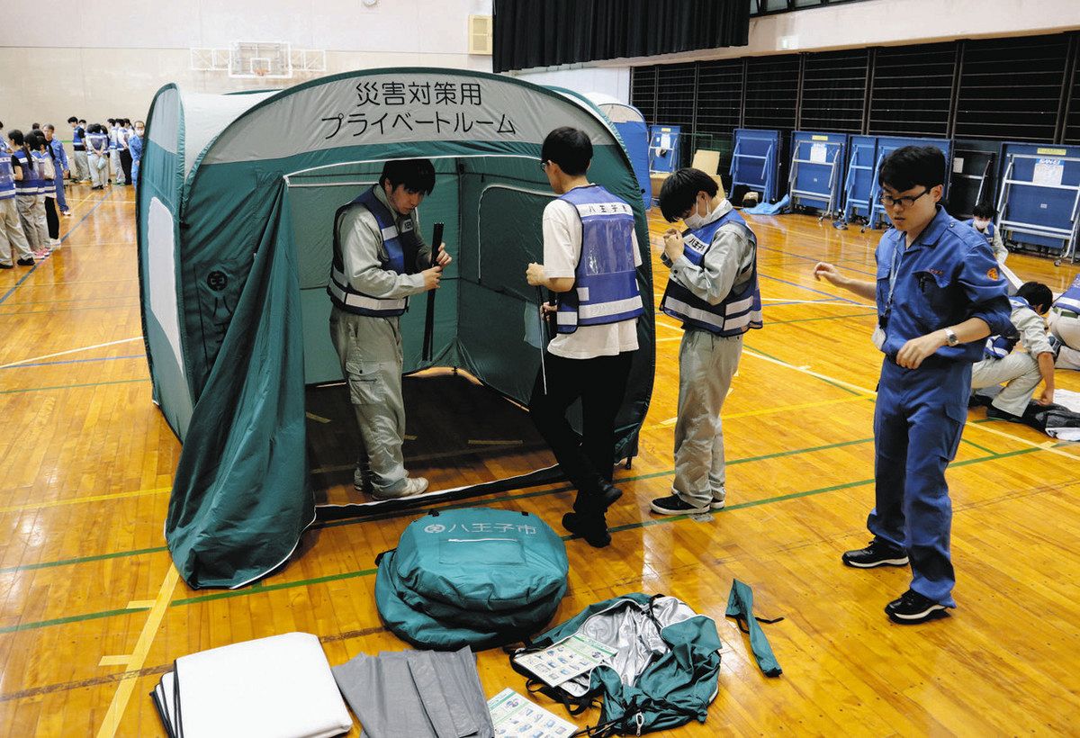 台風や水害、地震など相次ぐ自然災害に備えて、東京都八王子市は27日、若手職員らを対象に避難所運営や開設の研修を行い、災害時の対応を再確認した。