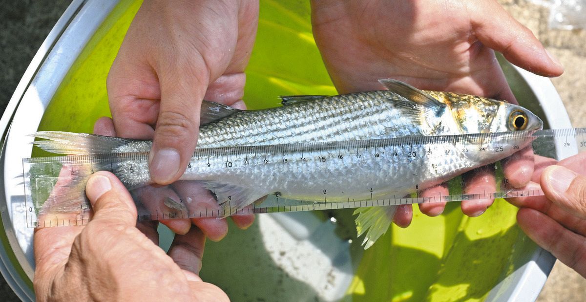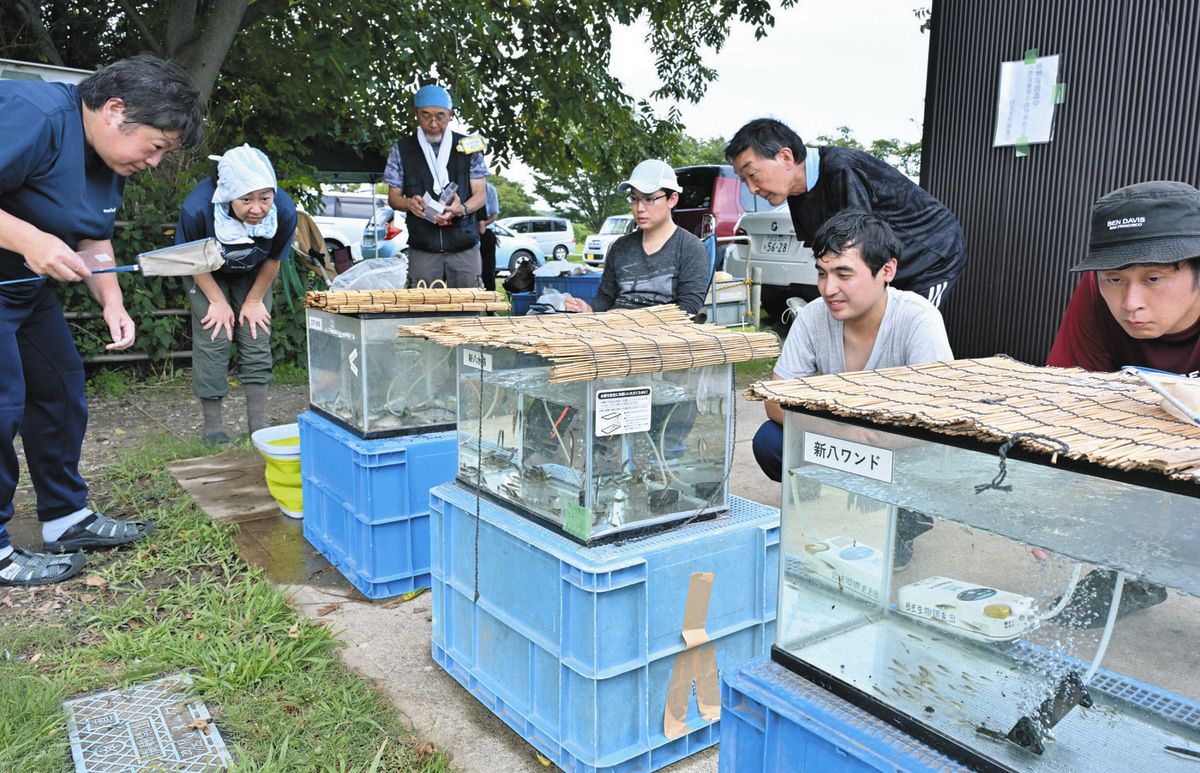 記者が訪れた日は10人が活動し、16種を確認した。本流ではオイカワ、ボラ、ニゴイ、ヌマチチブ、マハゼなど11種、水路ではスミウキゴリなど3種だった。