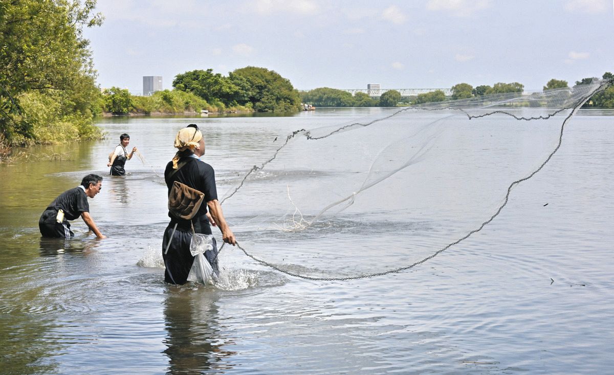 川に入って4時間も魚を探し、捕まえる作業は重労働だ。夏場は最高気温が35度を超える日もあり、参加者は汗まみれ。初めて加わったという千葉県市川市の会社員佐藤一郎さん(37)は「きつかったが、楽しかった。次も参加したい」と話していた。