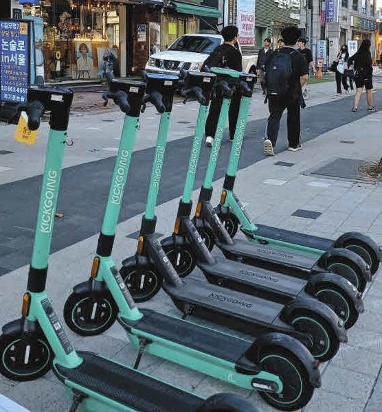 学習塾が集中するソウル・大峙地区の電動キックボード=上野実輝彦撮影