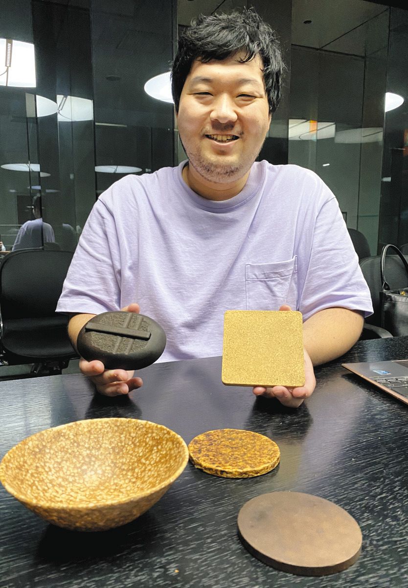 「廃棄物を価値あるモノにしていくのがミッション」。これまでは大半が飼料や肥料となっていた食品廃棄物をさまざまな素材に変える東大発ベンチャー「fabula(ファーブラ)」(大田区)。東京大生産技術研究所で環境負荷の高いコンクリートの代替素材を研究していた町田紘太社長(32)が食品廃棄物の可能性に目を付けたのが始まりだ。