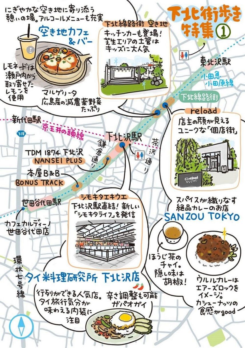2週にかけて下北線路街を特集。今回は東北沢駅から下北沢駅まで歩き、3つの商業施設内の人気スポットに足を運びます。スパイスが織りなす絶品カレーのお店「SANZOU TOKYO」、地域住民が集う憩いの場「空き地カフェ&バー」、本場の味に近いタイ料理を楽しめる「タイ料理研究所 下北沢店」にお邪魔しました。