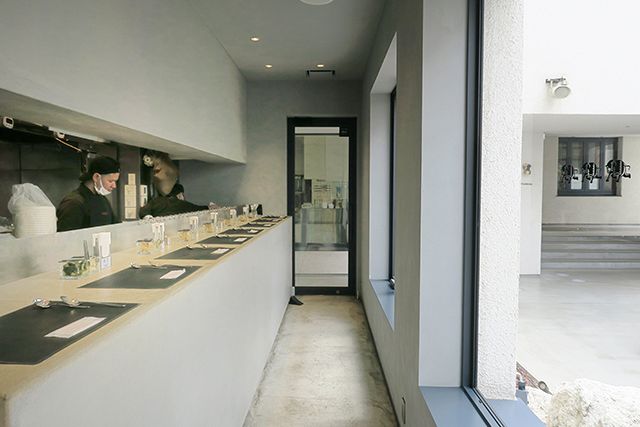 店内は全席スタンディング。コンクリート打ちっぱなしのスタイリッシュな空間です。
