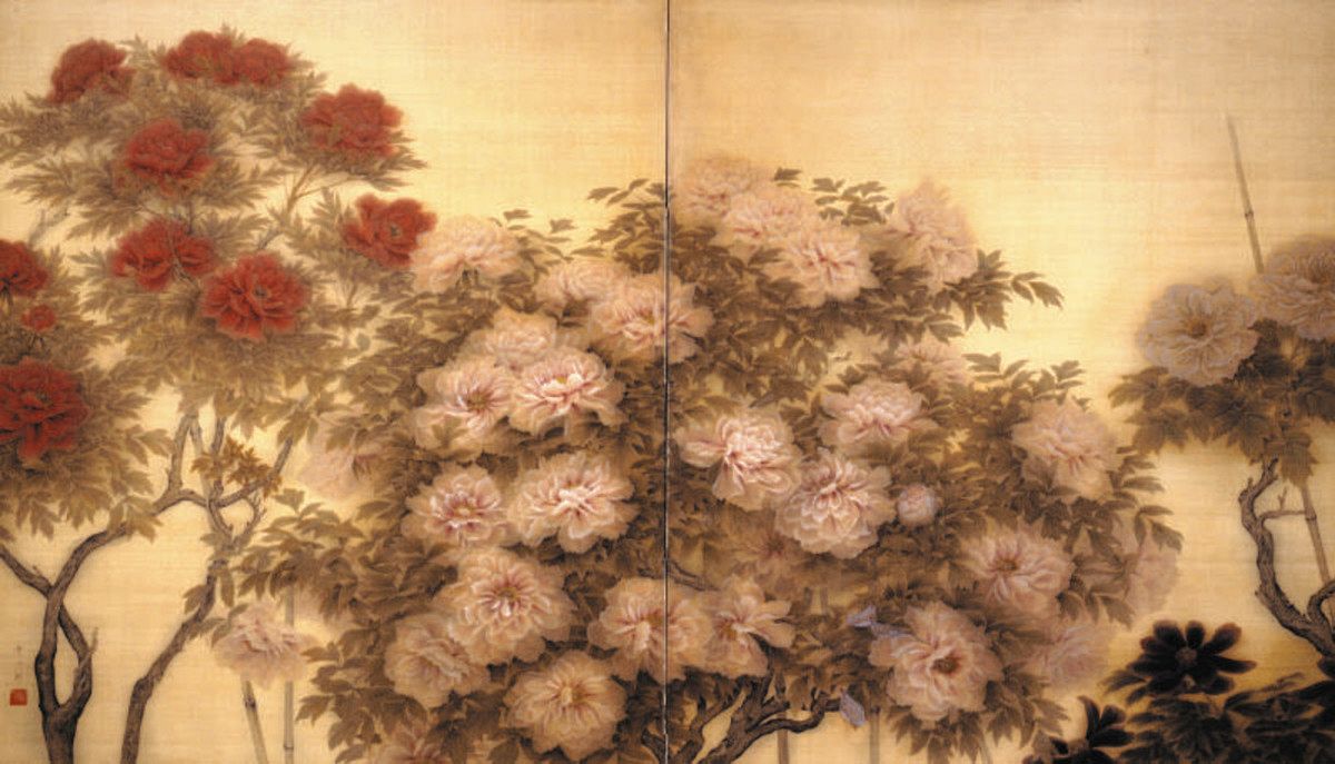 《牡丹》1924年絹本彩色二曲一隻163.6×287.6センチ山種美術館蔵