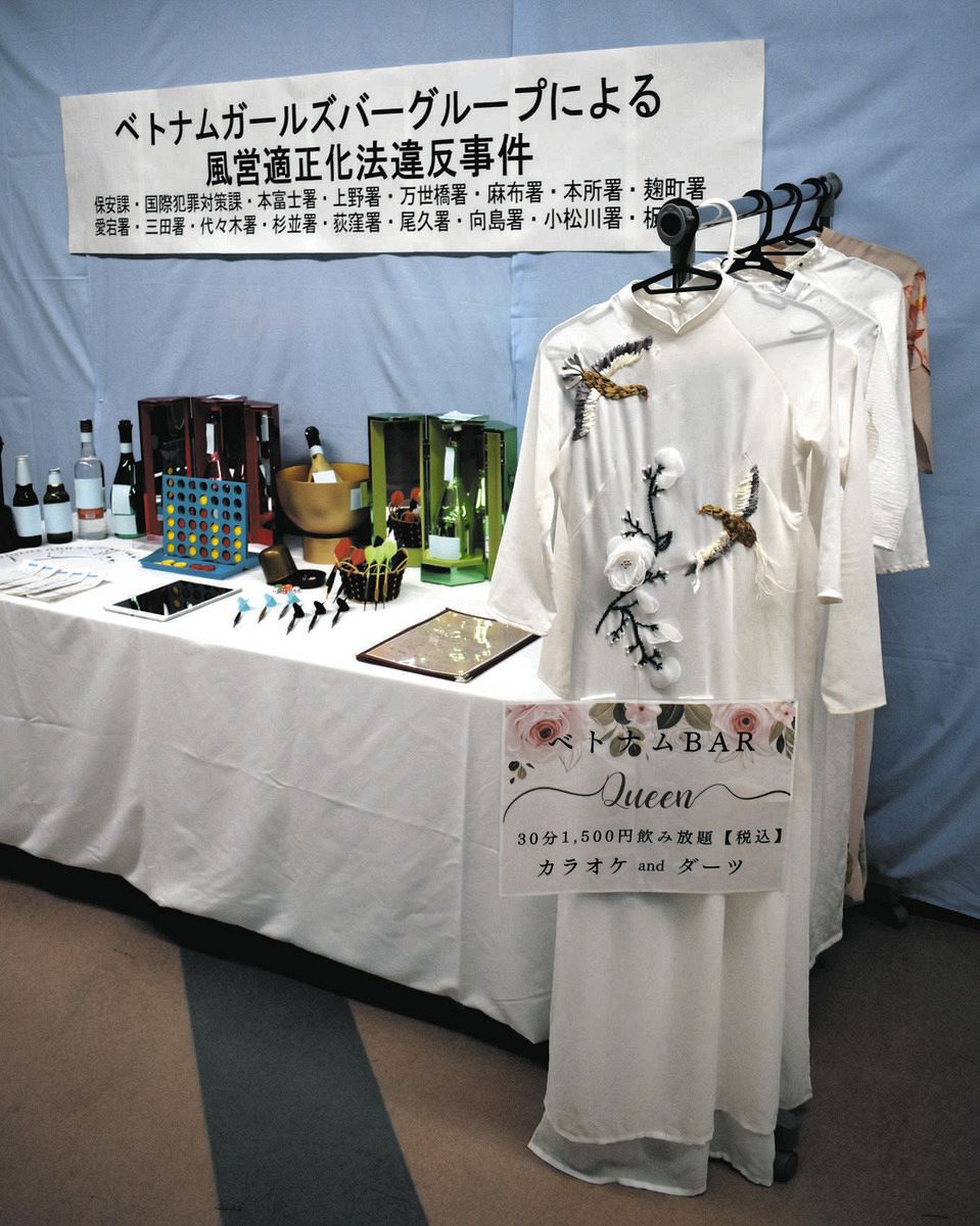 同課によると、ズオン容疑者らは湯島や上野など都内5カ所でベトナム人女性を従業員とするガールズバーを経営。2019年3月以降、計約4億4000万円を売り上げた。従業員はベトナムの民族衣装アオザイを着て、カウンター越しに接客。多くは留学などの在留資格で来日しており、不法就労の疑いもあるとみて調べている。