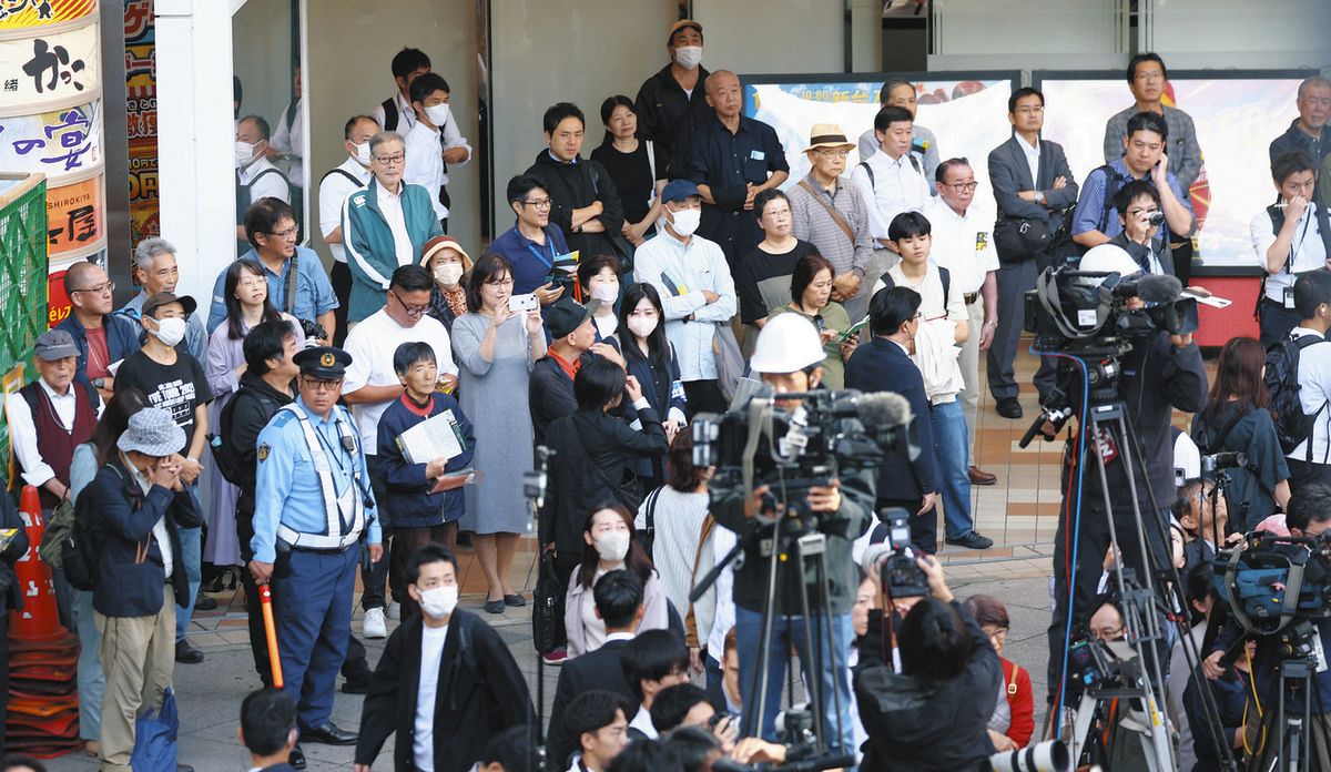 衆院選公示日に候補者演説に耳を傾ける人たち=東京都八王子市で