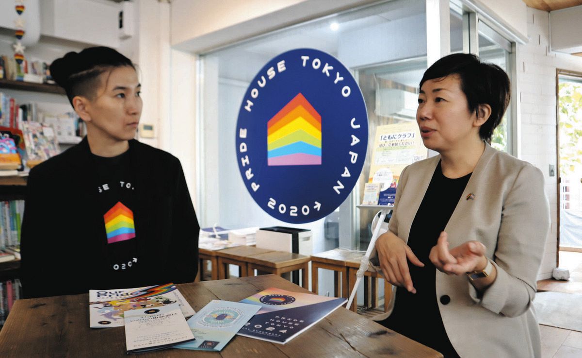 「プライドハウス東京レガシー」で話す共同代表の小野アンリさん(左)と五十嵐ゆりさん=17日、東京都新宿区で