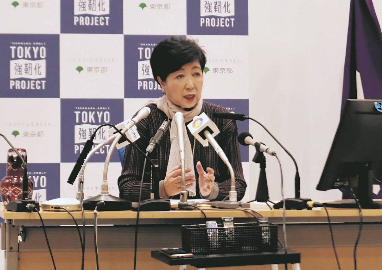 定例記者会見で話す小池百合子知事=25日、都庁で