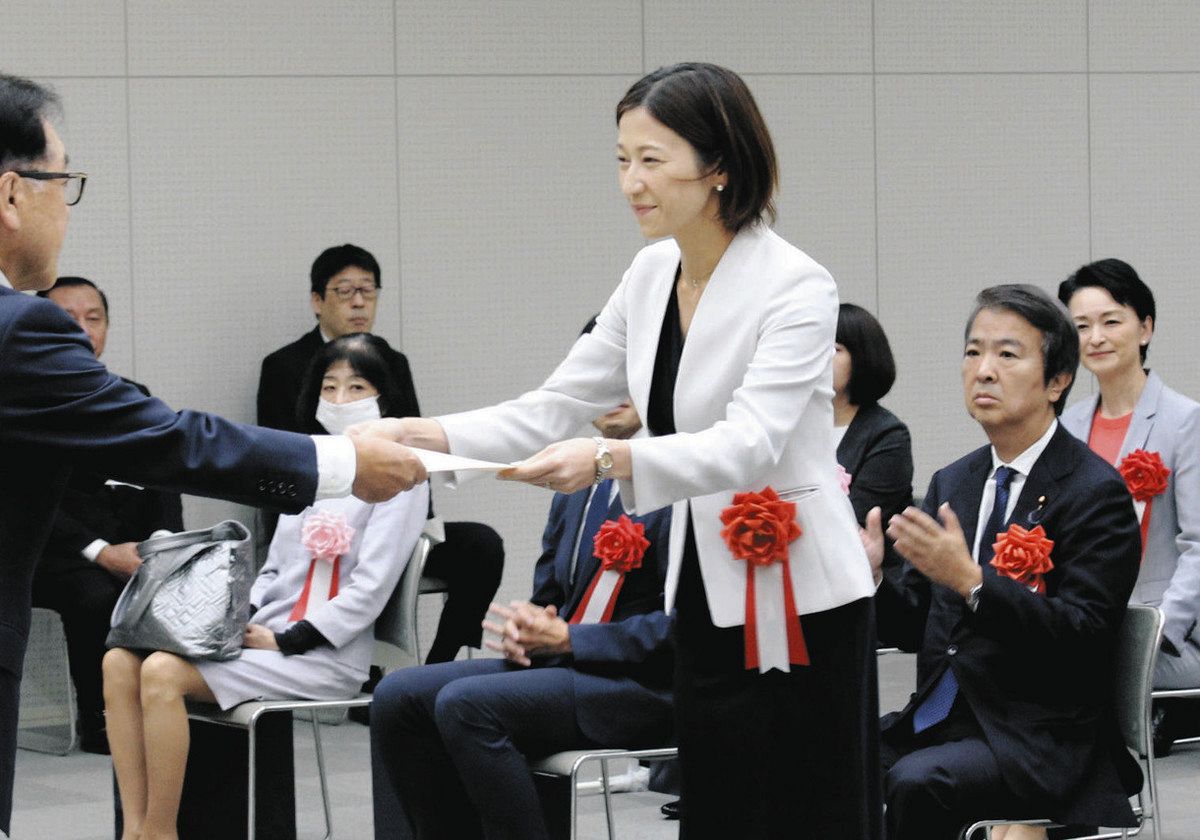 新議員のうち18区の自民、福田かおるさん(39)は「党を中から変えていきたい。子ども、孫たちの世代が希望を持てる、より良い日本社会をつくりたい」と語り、30区の立民、五十嵐衣里さん(40)は「証書をいただき少しずつ実感が湧いてきた。教育や雇用、憲法を守ることなどに取り組みたい」と抱負を述べた。(押川恵理子)
