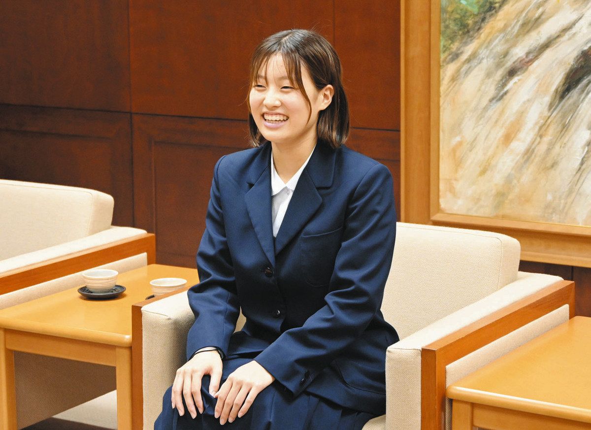 28日に区役所を訪れた堀切さんは「3月にシンガポールで開催される大会の日本代表に選考されるよう、良い成績を目指したい」と話した。吉住区長は「今後もさまざまな舞台で活躍されることを期待している。水泳選手として息の長い選手人生を歩んでもらえたらうれしい」とエールを送った。(西川正志)