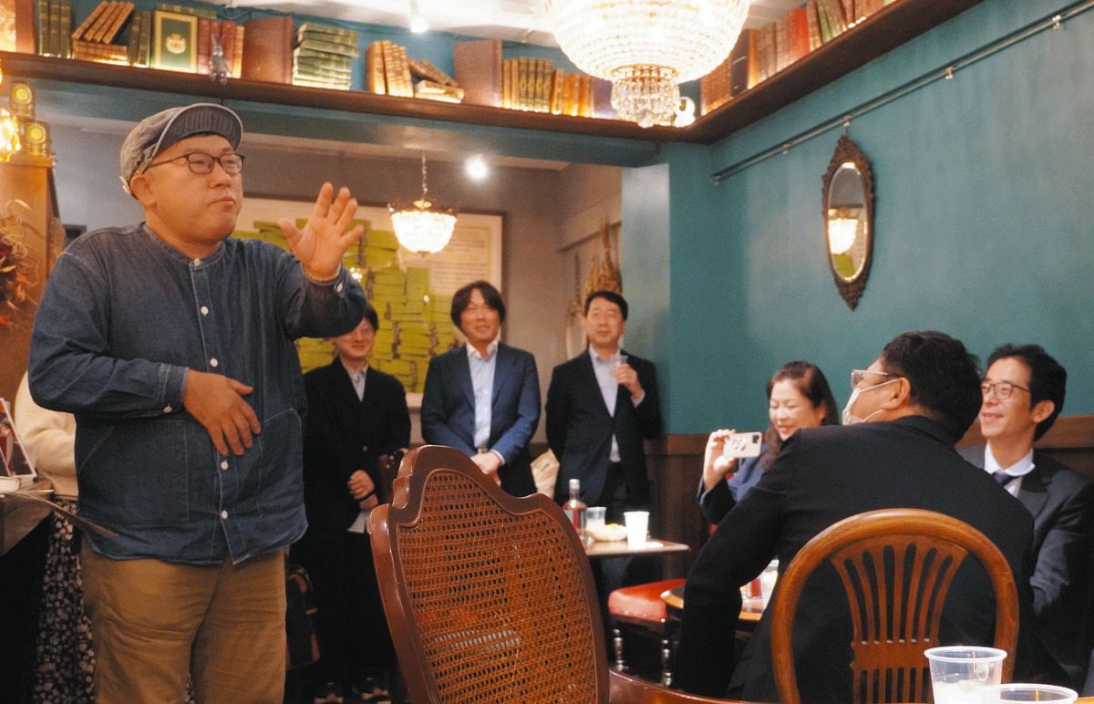 「避難所暮らしで仲良くなった地域の皆さんが、毎日店に集まってくれる。それが書店の役割なんだと痛感した」。10月31日、神保町のカフェで開かれた書店関係者向けイベントで、いろは書店の八木淳成さん(51)が熱弁した。