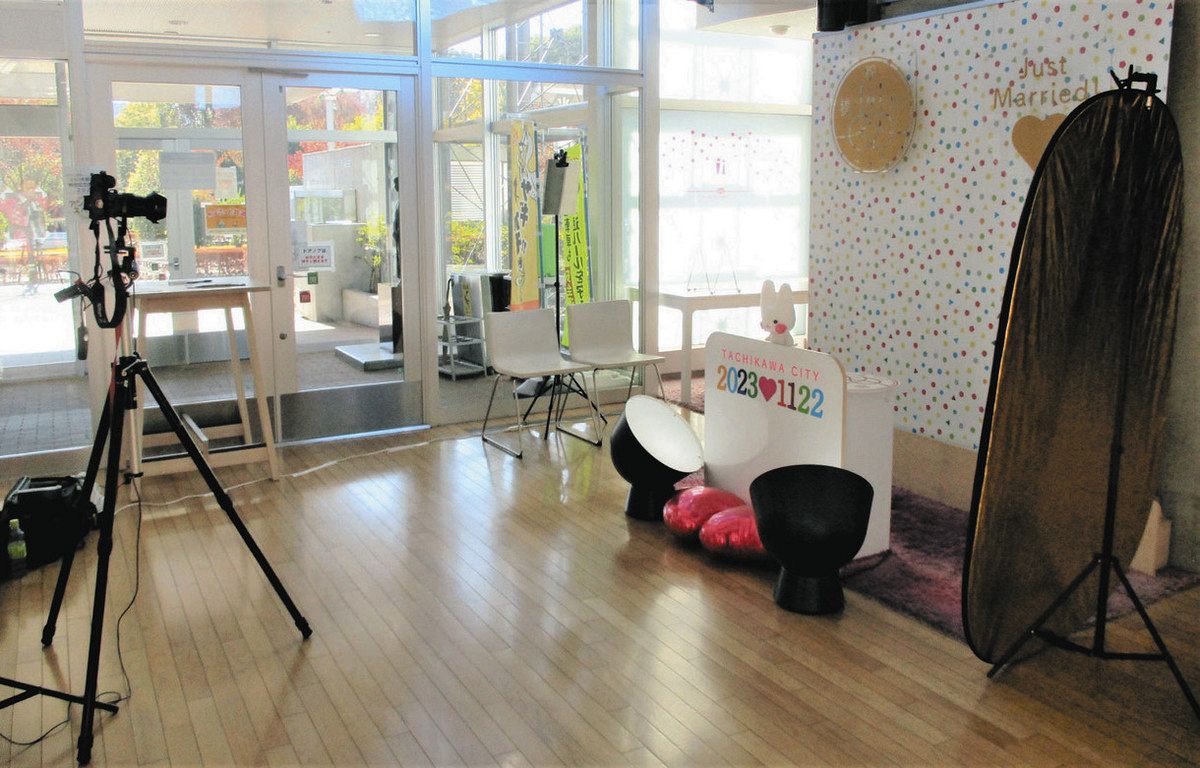 東京都立川市が「いい夫婦の日」の22日、新婚夫婦向けの記念撮影会を市役所本庁舎1階で開く。市が販売する「プレミアム婚姻届」を提出した新婚夫婦が、プロのカメラマンによる撮影サービスを受けられる。