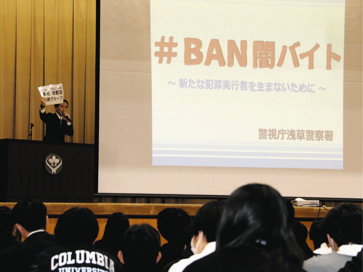 この日、浅草署員から闇バイトの話を聞いた3年の女子生徒(18)は、SNSで「ホワイト案件」という投稿を見たことがあるといい「身近に潜んでいると再確認した。加担しようとしている人がもしいたら声をかけたい」と話した。