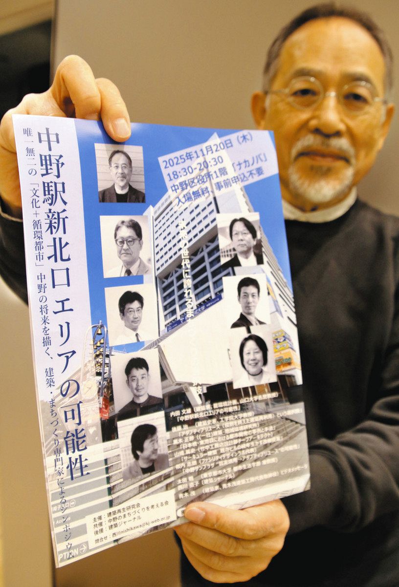 中野サンプラザ(閉館)がある東京・中野駅新北口エリアをめぐり、地域資源の活用を提案しようと、建築士としてまちづくりや再開発に携わってきた専門家たちが20日、中野区役所1階のイベントスペース「ナカノバ」でシンポジウムを開く。