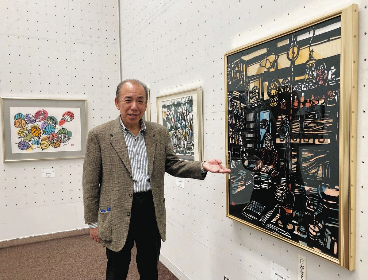 主催は「日本きりえ協会」で、文化庁や都などが後援している。一般公募や会員の作品計約250点が並ぶ。子どもを題材にした「4月から中学生!!」という作品や、和太鼓を熱演する人たち、青森県の弘前城と桜、浅草のサンバカーニバルなど多彩なテーマの作品を鑑賞できる。