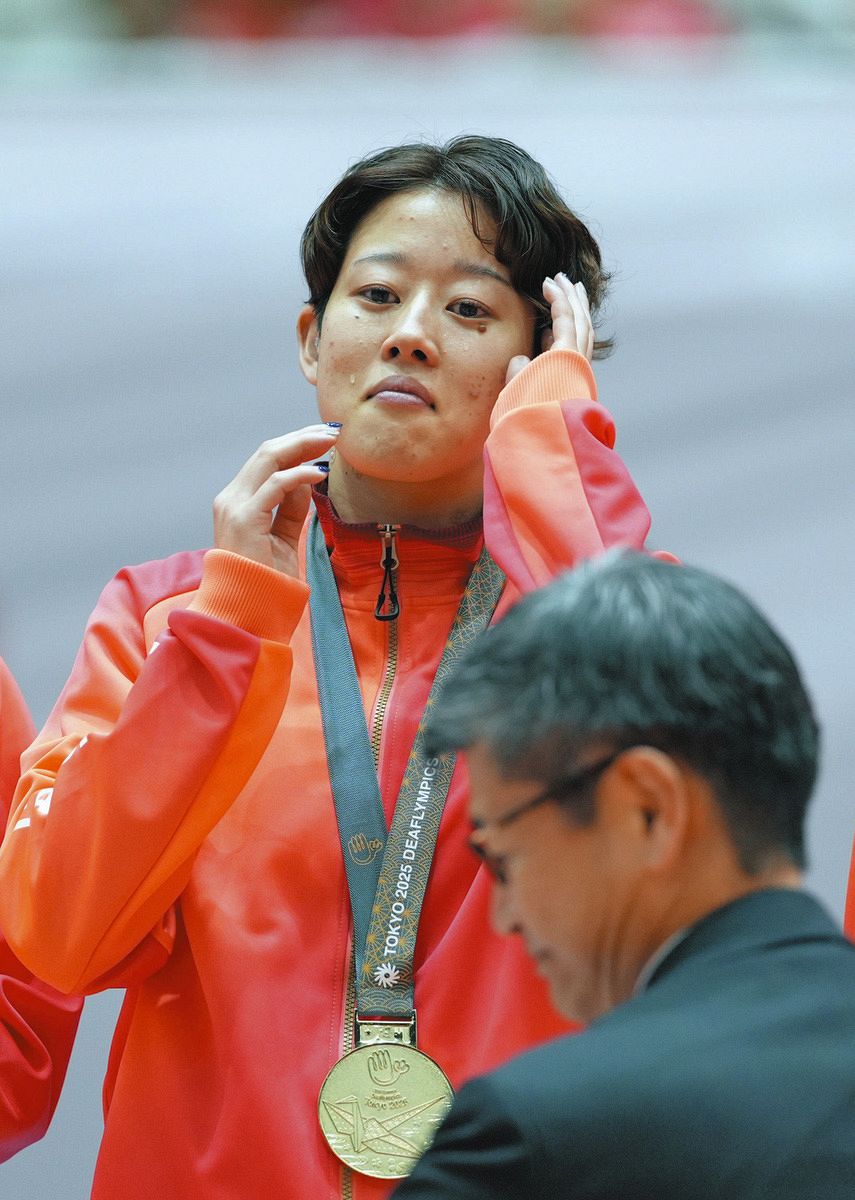 聴者とのコミュニケーションが取れず、大学時代にバレーから離れかけたことがある神奈川県葉山町出身の中田美緒選手(24)=清水建設=は「応援してくれた人の顔を見て、世界一になったと報告できた」と、表彰台でメダルを受け取り涙した。
