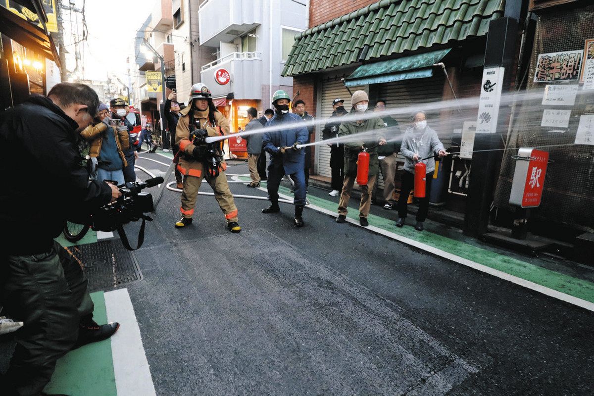 大分市佐賀関の住宅街で11月に起きた大規模火災を受け、東京都・世田谷消防署は世田谷区の下北沢一番街商店街振興組合と連携して、防火防災訓練を行った。