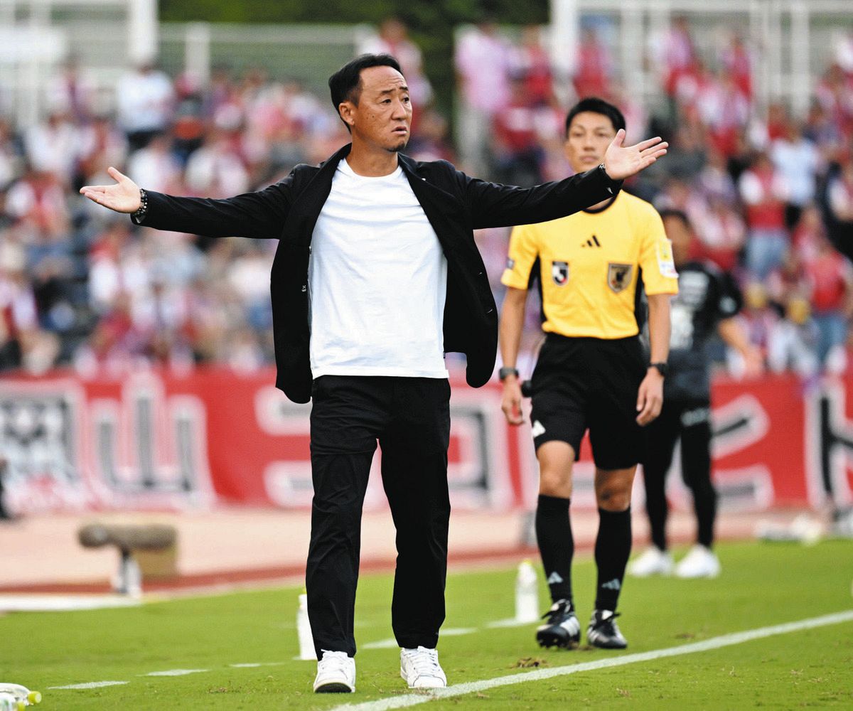 FC町田ゼルビアの黒田剛監督はシーズンを通してけが人に悩まされた=9月27日、町田GIONスタジアムで(芹沢純生撮影)