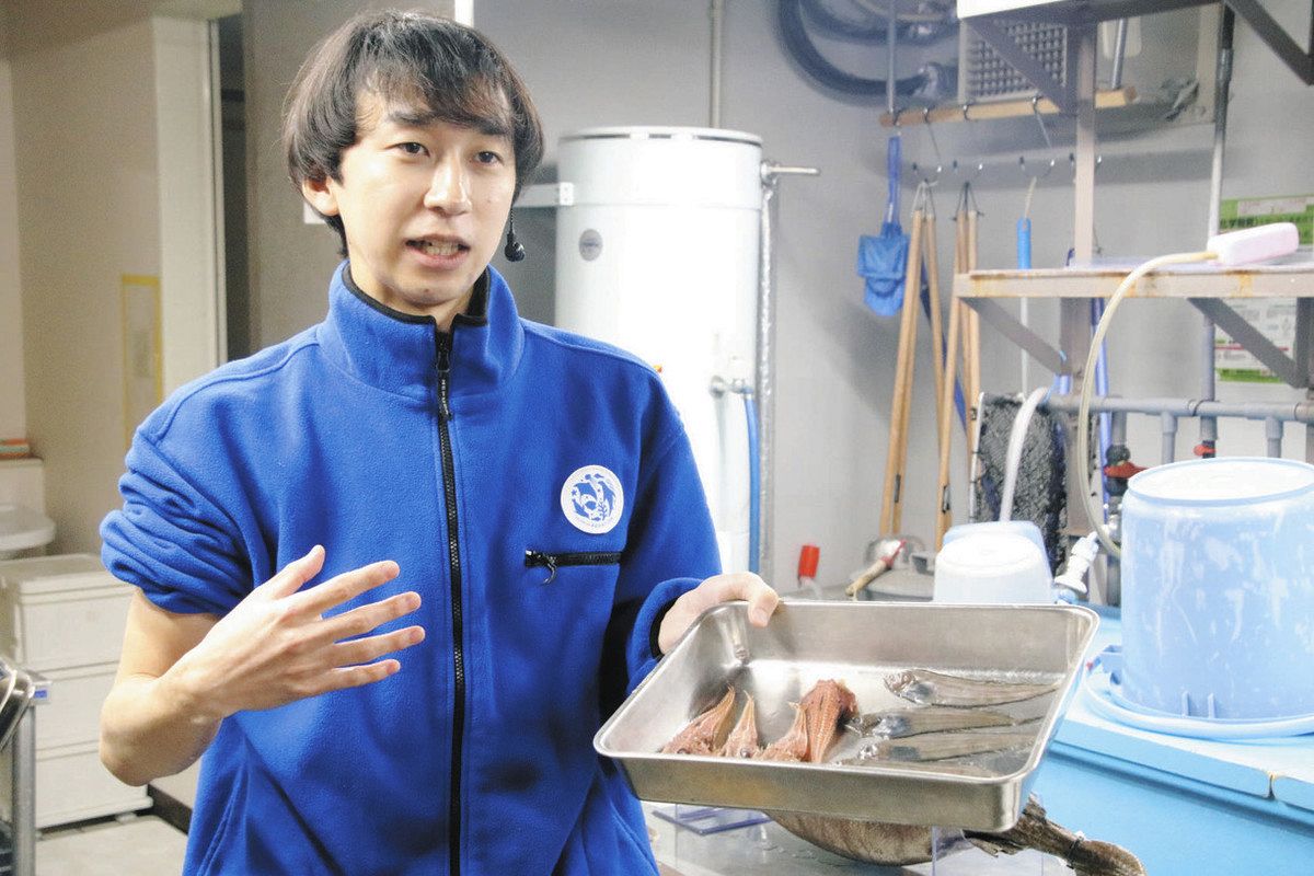 「水族館でお客さまから『この魚、おいしいですか?』とよく尋ねられるので食べてみたら、すごくおいしくて」。展示を発案した飼育スタッフの三田優治さん(28)は話す。深海生物も含め、さまざまな魚を実際に食してきた。