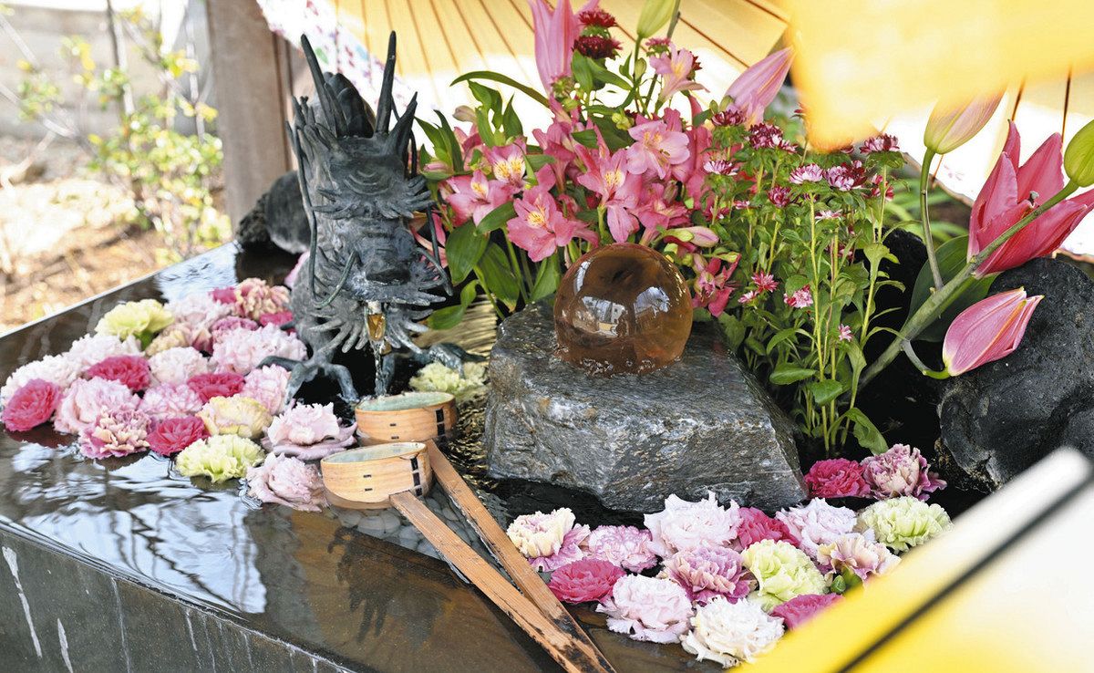 海野高敬(うんのこうけい)住職(35)が自ら花を選び、飾り付けも行うことが多い。気温にもよるが、冬場は10日に1回、夏の暑い時期は水温も上がるため2日に1回の頻度で花を替える。色合いはアイスなど食べ物を参考にするという。海野住職は「外国人観光客や老若男女が訪れ...