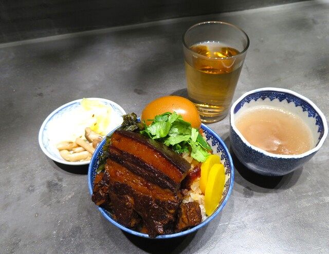 コンセプトは「シダだらけの魯肉飯屋」。ビカクシダで埋め尽くされた店内では、11〜14時のランチタイムに「魯肉飯定食」と「週替わり定食」が、14〜17時には「中国茶」か「中国茶と豆花のセット」が楽しめます。魯肉飯の豚肉はトロトロ&プルプルで、一度食べるとクセになる味わい。週替わり定食として提供している「あいがけ定食」では、カレーと魯肉飯のコラボレーションが楽しめます。